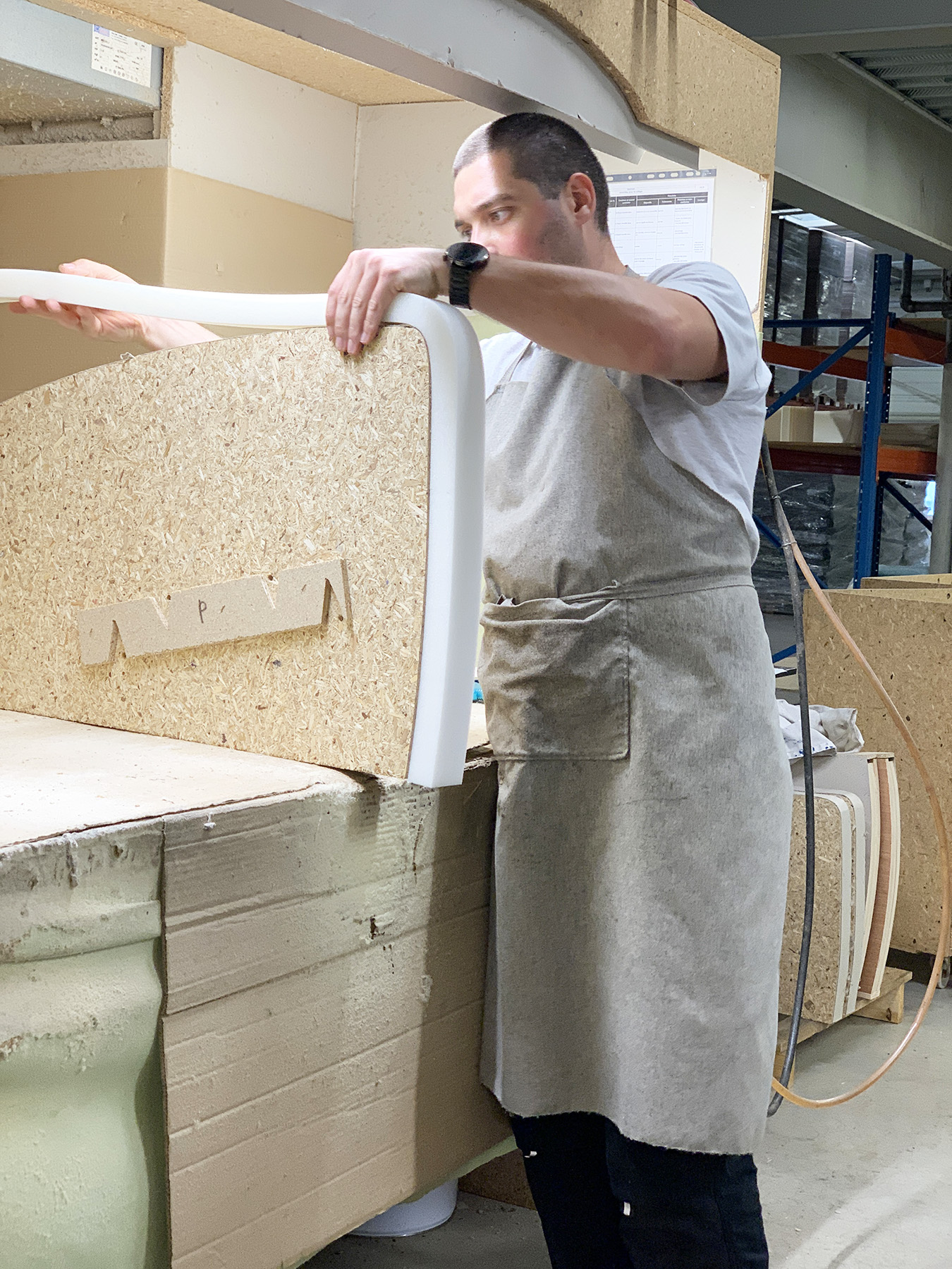 Nos artisans travaillent la mousse et les garnissages pour offrir un maintien ergonomique. Ils savent exactement où ajouter de la densité pour soutenir le dos, où alléger pour favoriser la détente.