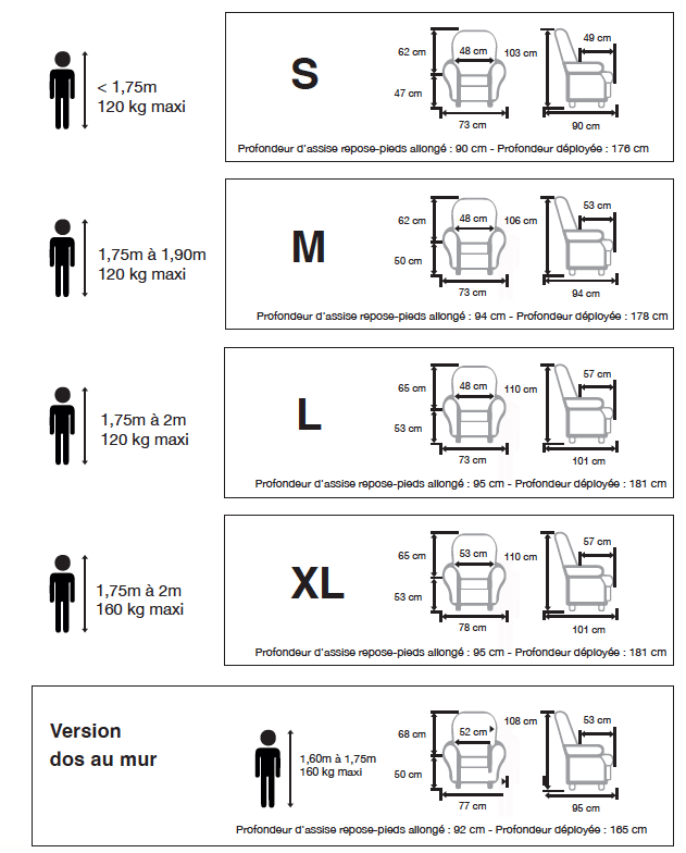 1 moteur dos au mur* 160kg, 1 moteur releveur, 2 moteurs releveurs